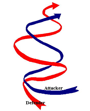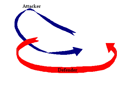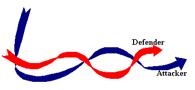 aircraft passes the defender and their roles reverse. Thus the attacker
